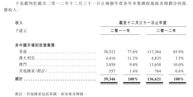2012年香港的批发额占香港整体业务的比例为63.83%,但根据18年的数据,香港的业务占比明显高于12年(12年安宫的批发没有完全放量),根据业务占比的比例,假设该比例为80%(63.83%/40.6%*53.3%=83.8%,考虑安宫处于供不应求的状态,所以假设集团可以调控其批发和零售的比例。)