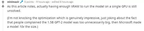 讨论页面:https://www.reddit.com/r/MachineLearning/comments/f1tuv0/r_turingnlg_a_17billionparameter_language_model/