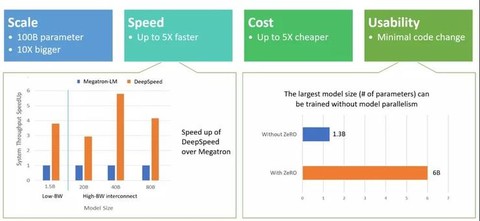 如上图所示,DeepSpeed在规模、 速度、成本、 可用性这四个方面标新都非常出色。