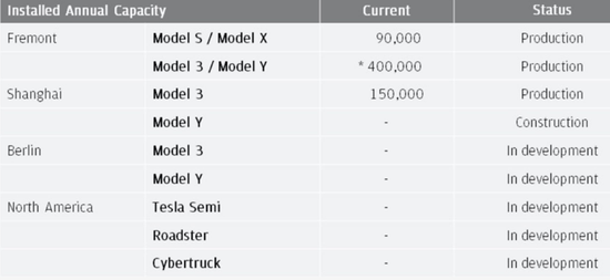 特斯拉突破产能瓶颈之后,交付不再成为问题。截至2019年末,特斯拉在美、中的两个生产基地已经投资,年化产能达64万辆(2020年下半年将提高到74万辆)。