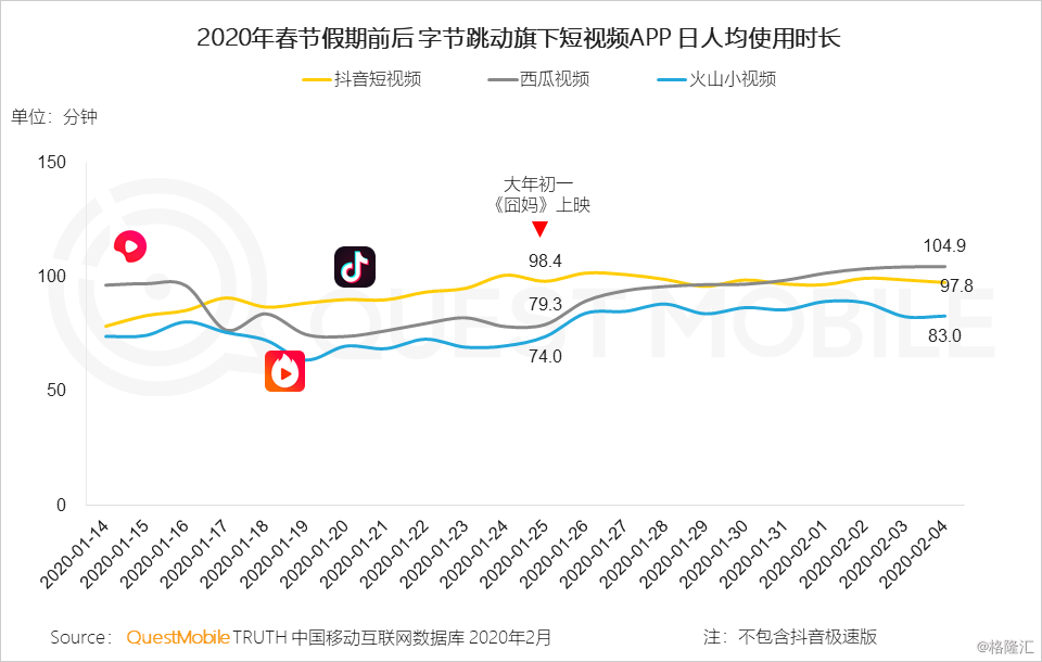 6.3 随着《囧妈》的上线,用户可以在字节跳动旗下短视频平台免费观看,西瓜视频和火山小视频的使用时长上涨明显