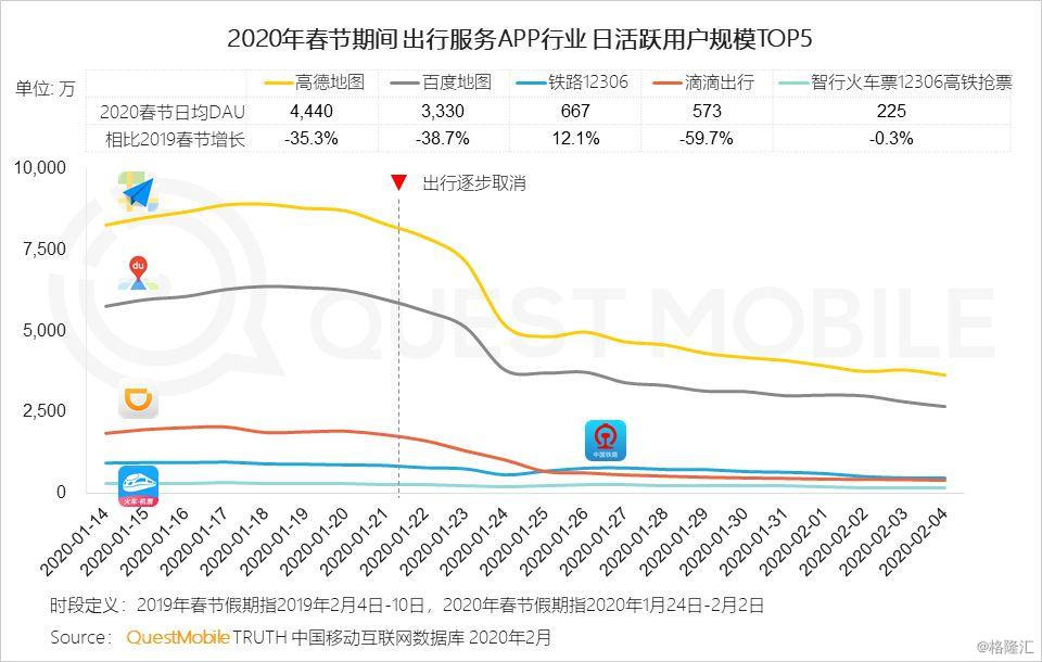 12.2 1月下旬开始,出行用户规模大幅下降,12306在春节后因退票和返程迎来一定上扬