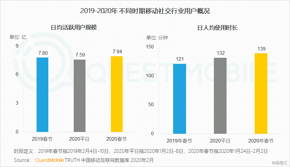 1.1 网民对移动社交依赖加强,更频繁地通过社交APP拜年、关怀亲友、获取信息等,时长比上年增加了15%