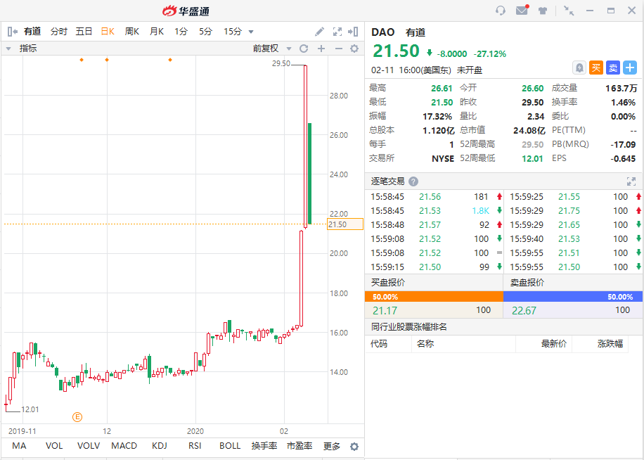 除了港股教育板块中新东方在线股价的连日拉升,美股网易有道的表现也可谓疯狂,前两个交易日,股价从16.38美元/股涨到29.50美元/股,涨幅达80%。但周二美股收盘,网易有道以21.5美元/股报收,大跌27.12%;一众在线教育中概股股价纷纷回落。但当股价暴跌的时候,对于投资者来说,可能正是买入好公司最好的时候,今天我们就来聊一聊网易有道。