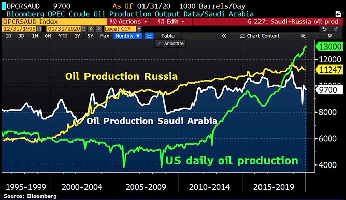 目前OPEC+执行的减产协议是在3月底前减产170万桶/日,沙特方面一直自愿加大减产力度,在协议规定的减产额度的基础上再减产40万桶/日,这意味着OPEC 实际上的减产规模为210万桶/日。消息人士称,技术委员会还建议将上述协议延长至2020年底。