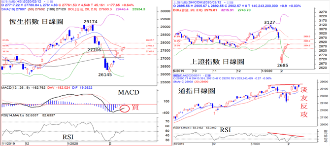 外圍市況方面,上證指數目前已升抵3127至2685跌幅的0.5倍反彈目標2906,倘若確切升穿,其後將挑戰大型下跌裂口的裂口頂2955及上述跌幅的0.618倍反彈目標2958,不然就有需要展開調整。美股方面,道指昨日先創下29415的歷史新高後回落至29276倒跌收市,在日線圖上形成「淡友反攻」的見頂形態。更重要的是,如果今晚美股進一步低收的話,14天RSI會呈現多頂背馳的強烈見頂訊號,預示道指有需要作出較大幅度的調整。