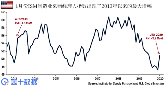 在连续5个月萎缩之后,美国制造业的基础更加坚实,1月份ISM制造业采购经理人指数为50.9,表明经济略有增长。这是自2013年8月以来的最大月度环比增幅,高于去年12月的47.2。当突发卫生事件的影响退去,黄金或将陷入一段盘整期。