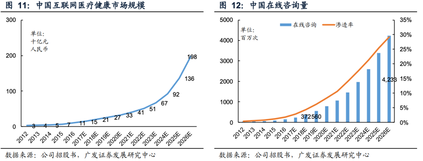 四是健康管理及健康互动业务,主要是为企业客户提供广告产品和服务来获取收入,公司的广告客户包括辉瑞、默克、赛诺菲等国际药企巨头。这项业务等收入占比不高,但由于超高的毛利率(81.6%),贡献的毛利润占比仍然可观。唯独可惜的业务的增速相对较慢,但未来用户规模增加后的增长仍然值得期待。