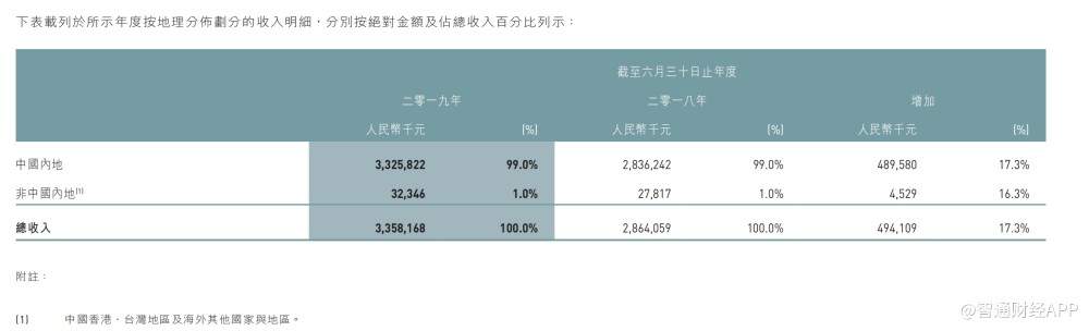 就销售地域而言,江南布衣2018/19财年来自中国内地的收入为33.25亿元,占比99%,来自其他地区的销售收入仅为1%。换言之,公司没有太多的海外销售渠道来分散销售风险。