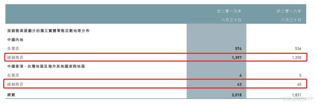 值得注意的是,为了扩大经营规模,江南布衣在2018/19财年进一步放开加盟,期内中国内地的经销商店达到1397家,同比净增长147家,中国香港、中国台湾及其他国际及地区的经销商店为43家,同比净增长3家。