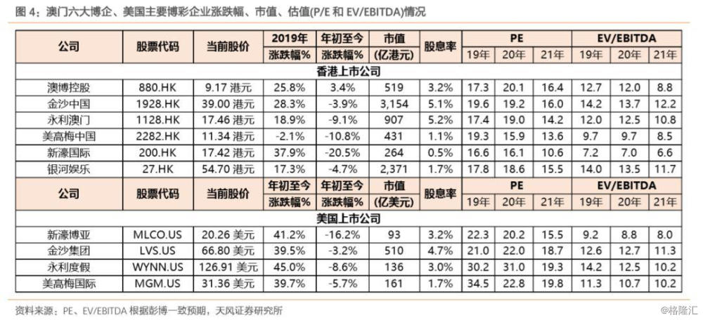 最后,永利的商业模式偏重VIP,这与澳门转型中场和非博彩的长期目标背道而驰,在2022年澳门赌牌续约中或存在变数。我们调整模型,给予对应2020年12.0x EV/EBITDA估值,目标价从17港元降至13.5港元,从“持有”降至“卖出”评级。另外,若疫情出现明确拐点,我们看好银河娱乐能引领行业复苏行情。