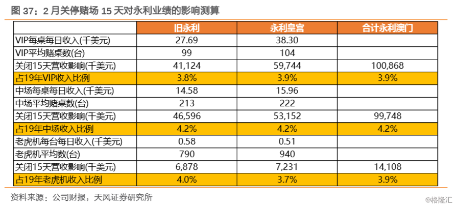 我们以19年平均单桌每日收入近似测算2月关停赌场15天对永利业绩的影响,得到目前15天的时间可能会对永利20年营收造成4%左右影响。同时澳门政府尚未决定赌场重开日期,我们基于当前行业展望,对永利澳门的盈利预测进行调整。