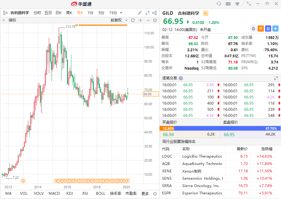 吉利德由内科医生迈克尔•瑞沃丹(Michael L. Riordan)成立总部位于美国加州福斯特城,因其创新能力被誉为“制药界的苹果”。其创始人Michael Riordan曾经两次去信巴菲特,试图找钱拉人,巴老就回了一句话,手写的,对不起,我给贵公司带不来任何特殊的东西,除了我的名声。但巴菲特股神也有看错的时候,截止目前,吉利德市值847亿美元,累计涨幅超过150倍。