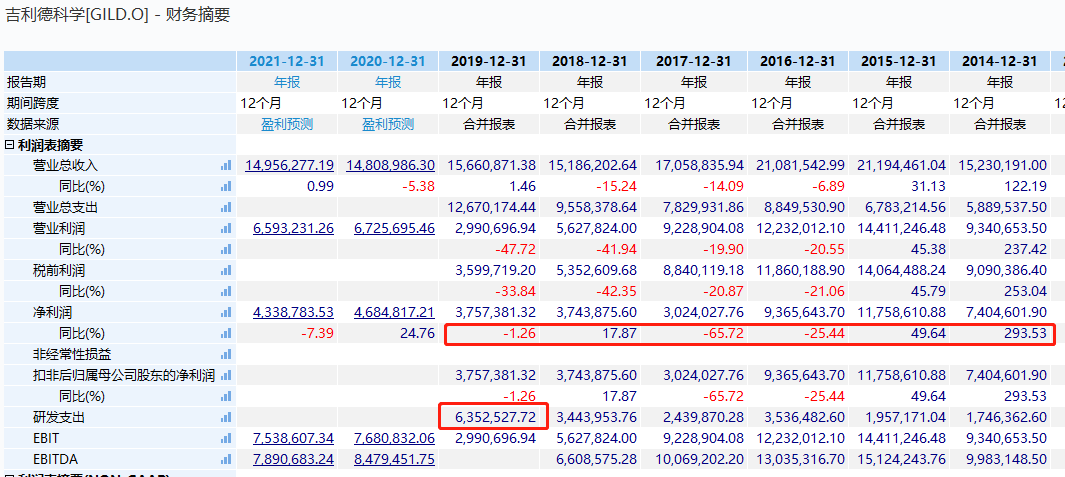 值得一提的是,近年来随着丙肝患者数量减少,丙肝药物市场萎缩,吉利德遭遇增长的瓶颈。2016―2018年间,吉利德的业绩与股价双双下行,至2019年,其业绩依旧承压。但相对与A股动辄百倍估值的医药公司相比,吉利徳的估值十分便宜,滚动市盈率只有15.74。