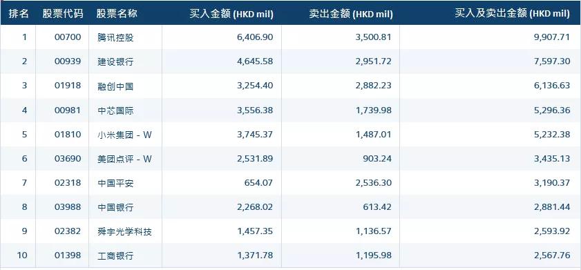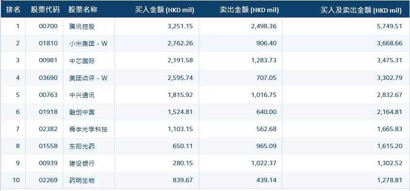 成交活跃股票方面,上月港股通(沪)南下资金前三大成交股分别为腾讯控股、建设银行及融创中国。港股通(深)南下资金前三大成交股分别为腾讯控股、小米集团-W及中芯国际。