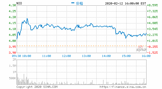 新浪科技讯 2月13日晚间消息,蔚来汽车(NIO.N)美股盘前跌5.65%,报3.84美元。