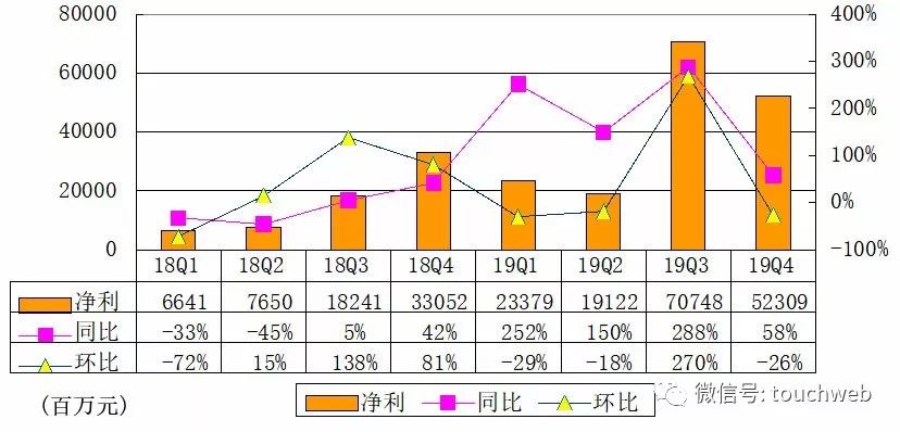 阿里巴巴2019年第四季度归属于普通股股东的净利润为523.09亿元(75.14亿美元),较上年同期的330.52亿元增长58%。