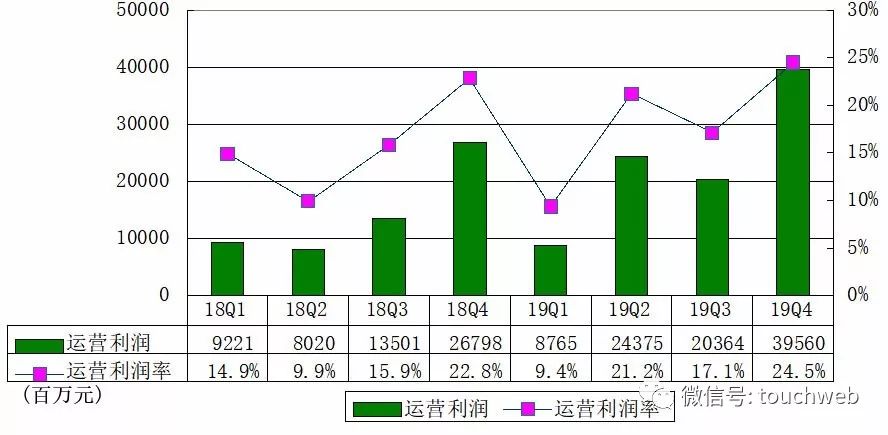 阿里巴巴2019年第四季经营利润395.60亿元(56.82亿美元),同比增48%。阿里巴巴2019年第四季的运营利润率为24.5%。