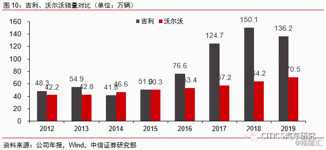 2012年吉利、沃尔沃销量分别为48.3、42.2万辆;2019年吉利、沃尔沃销量分别为136.2万辆、70.5万辆,合计销量超200万辆。如果能有效实现整合,有望在采购成本等方面实现协同。