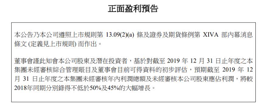 雅生活服务于2020年2月11日盘后公告了正面盈利预告,预计2019年度未经审核年内利润总额及未经审核归母净利润将分别同比增长不低于50%及45%。