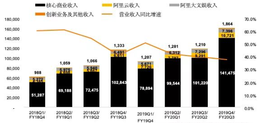 2月13日,尽管受疫情影响,阿里巴巴仍准时交出赴港上市后首份财报,即2020财年三季度业绩报告(按自然季为2019年四季度业绩报告)。