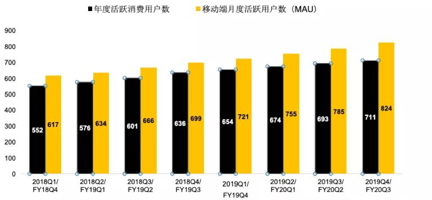 最后是用户规模。三季度,阿里巴巴的中国零售市场移动月活跃消费用户数达8.24亿,同比增加3900万;同期,中国零售市场年度活跃消费者达7.11亿人,同比增加1800万人,其中超过60%的增量来自欠发达地区,可见阿里在拼多多入局后加快了自身下沉的步伐。