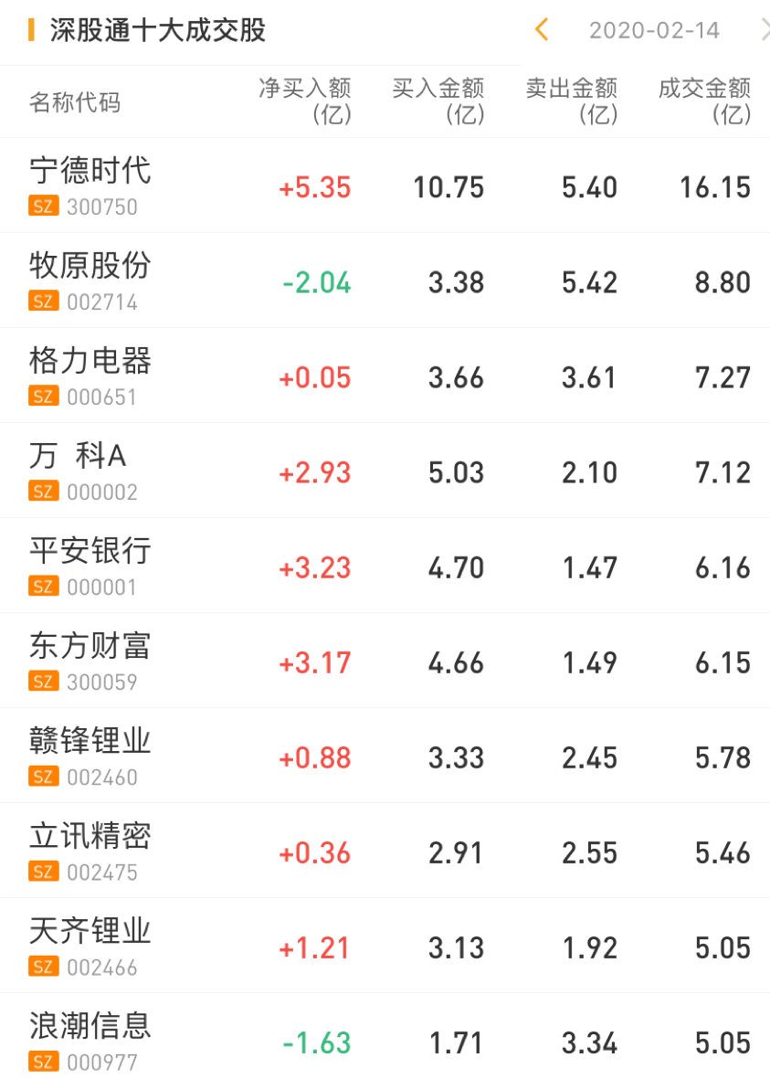 深股通净买入宁德时代5.35亿元,净买入万科A2.93亿元,净买入平安银行3.23亿元。