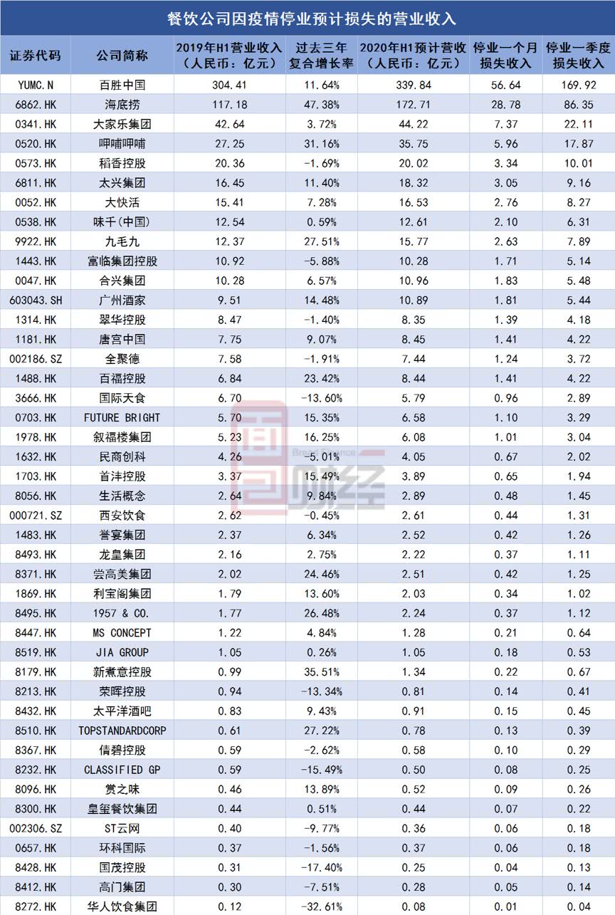 此次疫情极大减少了外出及旅游人群,主营业务在内地和港澳台的餐饮公司都将因停业而面临重大收入损失。