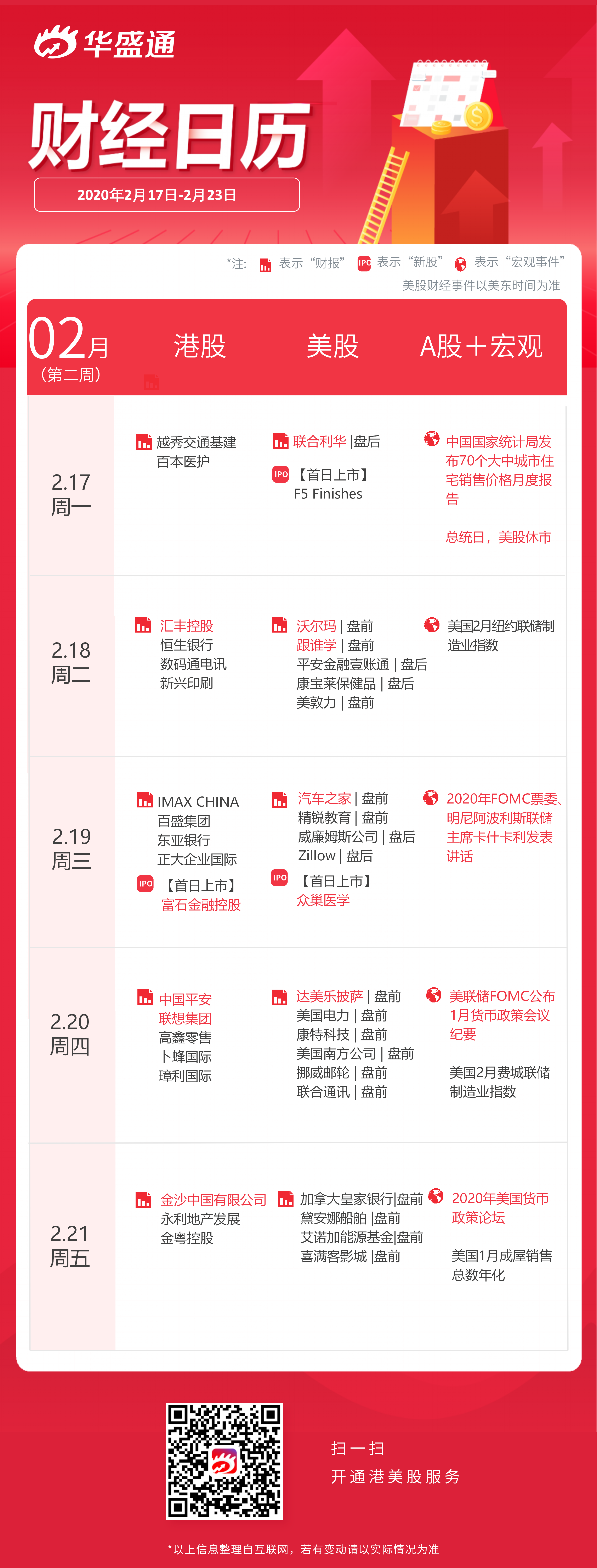 2.本周港股一只港股新股挂牌:富石金融控股;汇丰控股、中国平安、金沙中国领衔港股财报季;