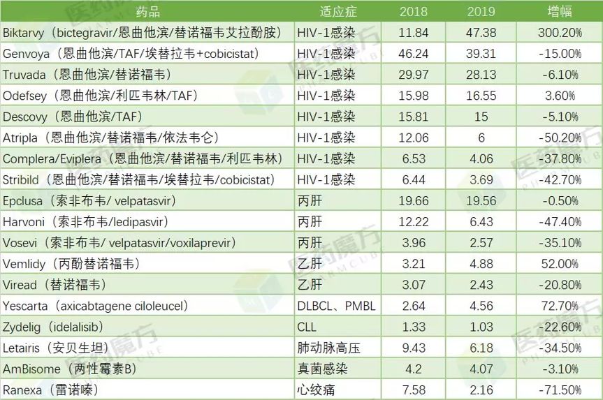 回看2019年业绩,几乎是全凭艾滋病药物Biktarvy一己之力来维持公司总体整体业绩平稳,弥补其他产品的全线下滑。