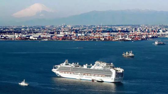 被隔离在日本海域的“钻石公主号”邮轮。丨The Associated Press
