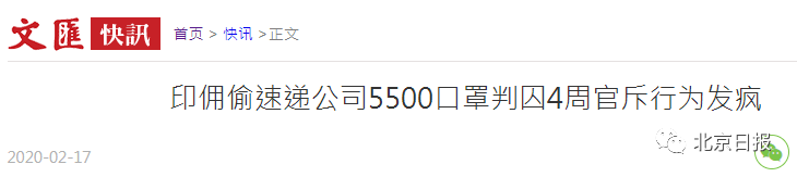 日前,香港一快递公司发生5500个口罩失窃事件。2月17日,印尼籍女佣在屯门裁判法院承认两项欺诈罪,裁判官严词批评被告“行为发疯”,判她入狱4星期,交还涉案口罩并赔偿12000元给该快递公司。