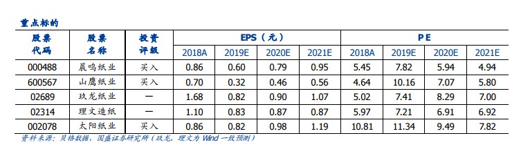 包装纸供给收缩,废纸系成品纸缺口有望兑现。公共卫生安全事件对造纸需求端变动产生不确定性影响,废纸系受益成品纸供给端下降,预计2020年成品纸供给缺口将兑现。受到物流运输影响,原材料废纸回收量大幅减少,同时难以送达纸厂,包装纸中小厂偏多,开工率低,预计全年产量下降幅度达到8%左右。禁废政策力度延续,2020年包装纸缺口兑现可能性较大,推荐废纸系龙头企业山鹰纸业、玖龙纸业、理文造纸。