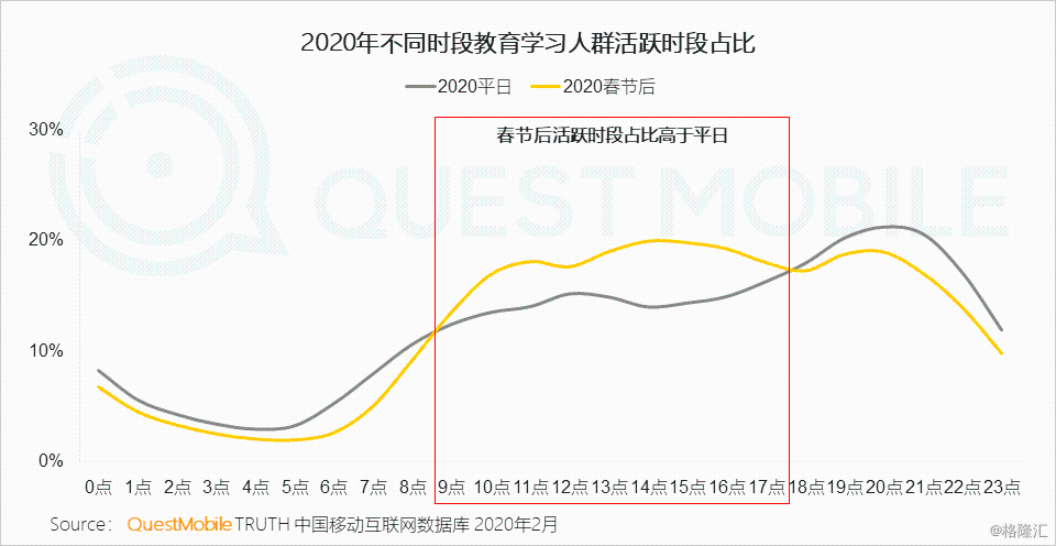 Ⅲ 与在学校的学习节奏类似,早9点至晚5点学生们的活跃占比明显高于平日,而放学后的辅导课程较平日则明显下降