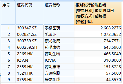 CRO行业遍布A股、港股、美股,经过统计截至2020年2月18日的涨幅,其中几乎各个市场的公司都取得了不少的涨幅。虽然我国 CRO 行业起步较晚,仅有 20 多年的发展历史,但是和国外 CRO 企业相比,国内企业具有更高的成本优势和符合欧美标准的质量控制体系,相对优势明显,成为了国际创新药企业理想的外包市场。目前海外TPO6 CRO龙头企业收入规模达百亿规模以上,国内的CRO企业各项成本较低,并且国内的创新药正蓬勃发展,这些公司过去涨幅不小,未来仍有可能取得不小的涨幅。