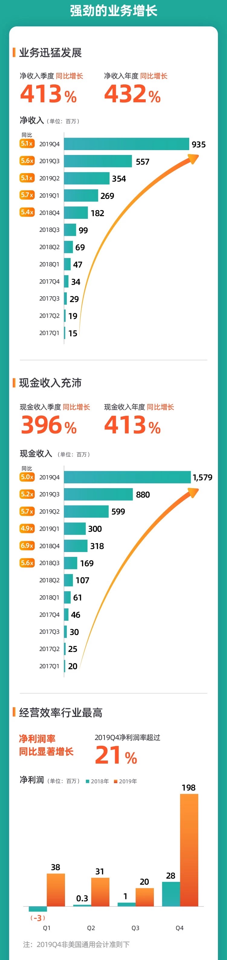 现金收入2为33.582亿元人民币,同比增长412.6%。