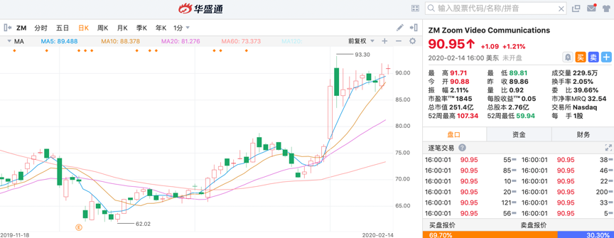 在高瓴增持的标的中,最值得一提的是专注云视频服务的ZOOM。ZOOM于去年4月份登上资本市场,而高瓴在2014年便投资了ZOOM,成为其重要投资人,并在后续几轮融资中持续加码。在新冠肺炎爆发后,长时间的封锁和隔离,使得远程办公、在线教育的需求引来大爆发,而专注视频通讯的ZOOM也获得了大量的市场关注。在疫情爆发后的2月,截至目前,ZOOM已经上涨近20%,而2020年ZOOM已经累计上涨超35%。