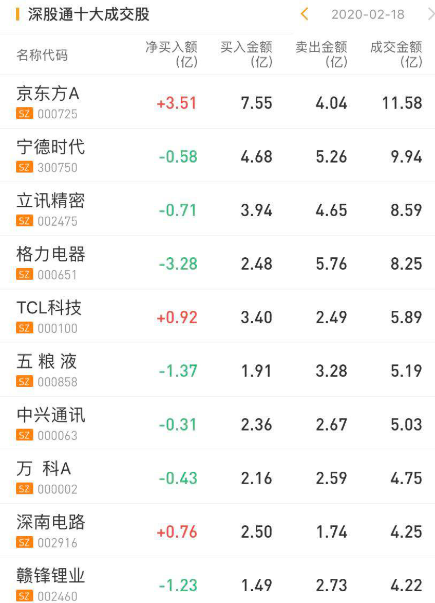 深股通净买入京东方A3.51亿元,净买入TCL科技0.92亿元,净买入深南电路0.76亿元。