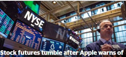 苹果美股盘前跌超4%,该公司预计今年第一季度无法实现营收目标。