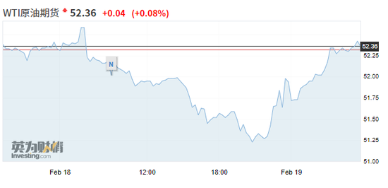 国际油价周二(2月18日)盘中承压下挫逾1%,终止了连续五日的反弹。美国WTI原油期货价格盘中最低触及51.16美元/桶,布伦特原油期货价格盘中最低触及56.31美元/桶。尾盘,国际原油走出V字反转行情,截至北京时间05:57,美国WTI 4月原油期货价格报52.36美元/桶,布伦特4月原油期货价格报57.72美元/桶。