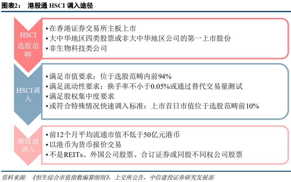 基于港股通调入的HSCI途径,我们的股票纳入预测标准如下: