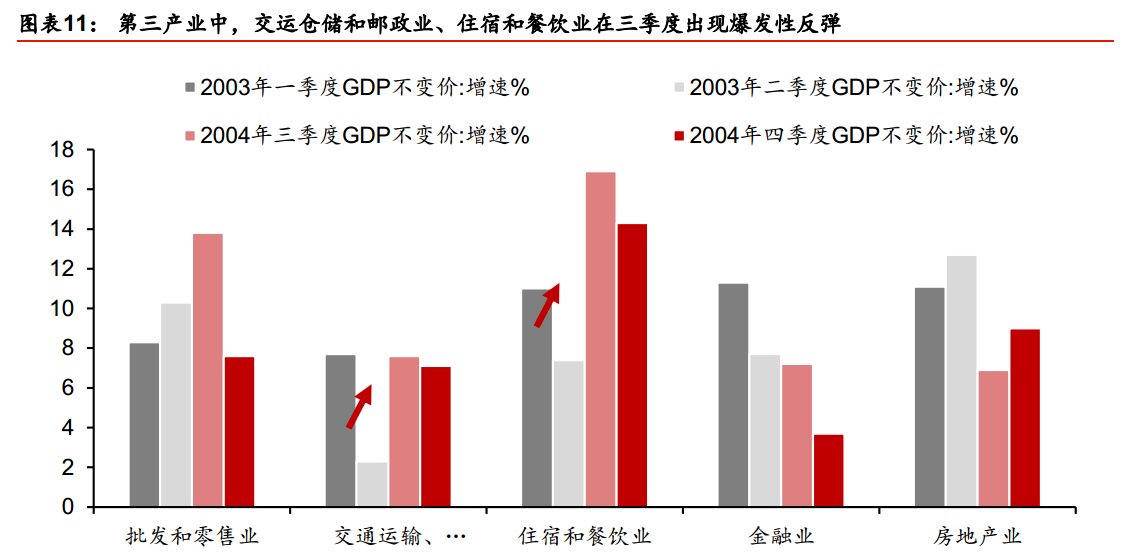 不过随着 2003 年 5 月下旬疫情被有效控制,至 6 月 4 日出现新增病例“ 0 增长”, SARS 阴霾逐渐散去,人们又开始走出家门,释放积聚已久的紧张情绪,居民的消费欲望重新被唤醒,住宿、餐饮、旅游、航空等行业出现爆发性反弹。