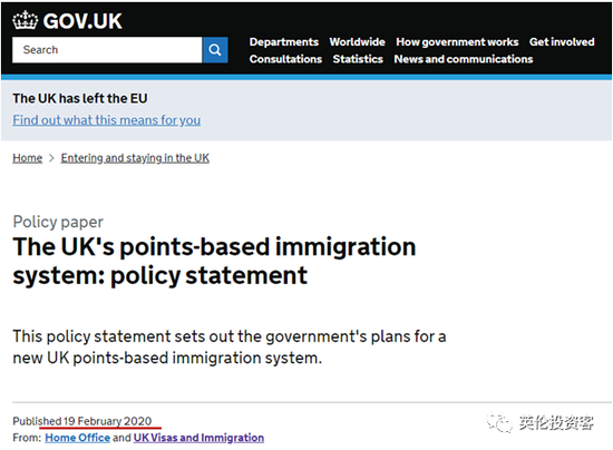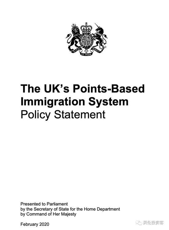 2020年2月19日,英国政府发布了全新积分制移民体系的详细政策说明(The UK‘s Points-Based Immigration System:Policy Statement),第一次正式对外公开了这一脱欧后新移民制度的细节。
