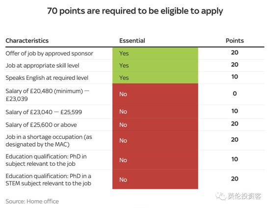 个人的年龄和资格等并没有被放入评分系统。看得出,英国政府将该权利下放到企业雇主,让企业来决定申请者是否有资格胜任这份工作。