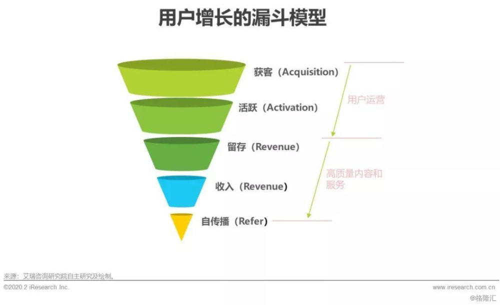此次疫情使在线教育机构获得了大量的免费领课用户,但免费流量质量也会大打折扣。如果借用互联网公司常用的漏斗模型(AARRR模型)分析,以往教育机构获得的付费流量多已经过层层筛选达到第四个环节,即直接是付费用户的环节,但此次的免费流量多停留在漏斗的第一层。