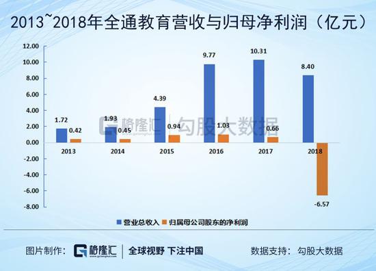 还是以全通教育为例,如果单纯看2013~2016年的业绩,看起来还算不错,营收增长了4.7倍,利润增长了1.5倍。暂且不提就算以这样的业绩增速也支撑不起极高的股价,但稍微研究过公司就会发现,2014~2016年业绩“跨越式”增长绝大部分靠的是并购。而且事实证明并购的效果并不好,2018年营收就下滑了18.6%,当年更是因为之前并购的子公司计提了商誉减值而导致业绩“洗澡”。