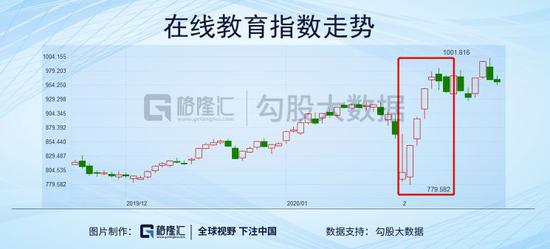 受疫情影响,春节休市后的第一个交易日,大A市场则是“惨不忍睹”,有超3000只个股跌停,而在线教育却与医药一起,贡献了一片绿色中少有的那一点红色。接下来几天市场反弹过程中,在线教育则继续领涨。2月4日~2月7日,四个交易日内板块上涨了22.2%。