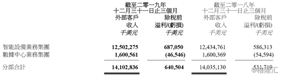 数据中心业务方面,其核心业务服务器和存储的产品的出货量同比增长18%,但受大宗商品价格下调影响,季度收入16.01亿美元,同比基本持平,占总收入比例为11%。其收入同比跌幅较此前两个财季的14%及17%有所收窄。