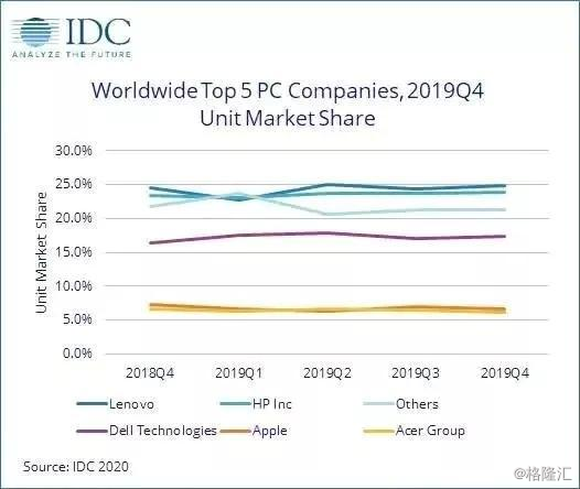 上月,国际市场研究机构IDC发布2019年Q4全球PC(含台式及传统笔记本电脑)出货统计报告,显示第四季全球PC总出货量达7180万台,同比增长2.7%,创近四年PC单季出货量新高。且自2011年以来,行业首次出现全四季出货量同比出现正增长。