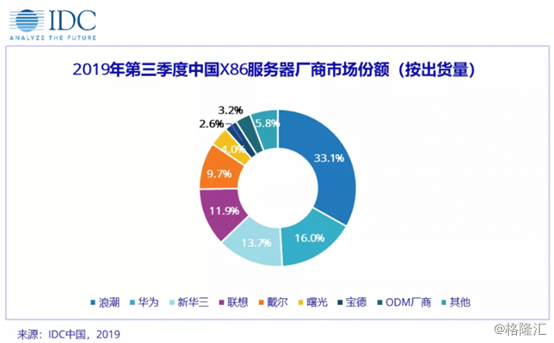 联想数据中心业务的主要收入来源为X86服务器。据IDC统计,联想在去年第三季度中国X86厂商中市场份额为11.9%,排行业第四。
